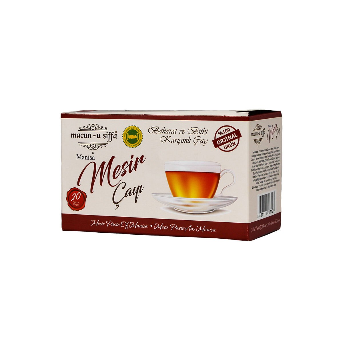 Manisa’nın yüzyıllardır süregelen Mesir Macunu geleneğinden ilham alınarak hazırlanan Mesir Macunu Çayı, zengin bitki ve baharat içeriğiyle günlük tüketime uygun özel bir karışımdır.